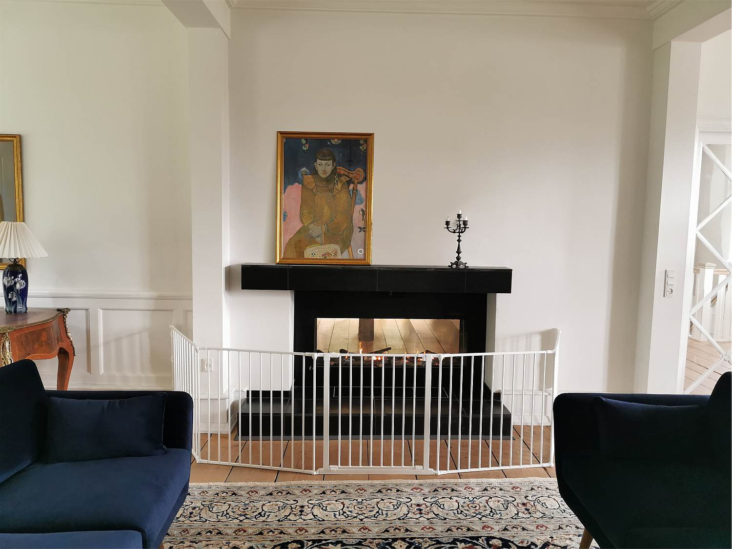 Baby Dan - gate - fireplace cover FLEX XXL - a perfect solution for a home with a fireplace and small children. Curious little ones will be safe with the Baby Dan gate - they won't come too close to the fireplace.