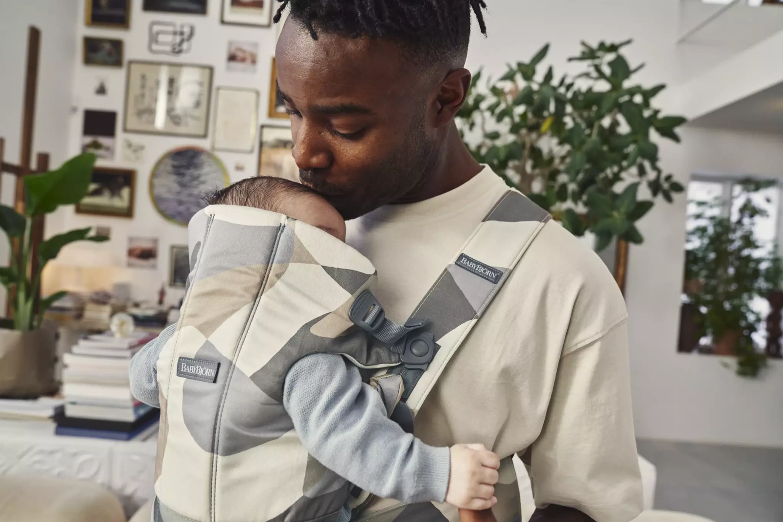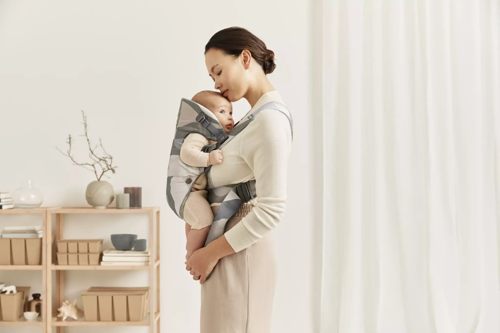 The super-soft fabrics in Baby Carrier Mini create a cozy space for your newborn and are comfy against their delicate skin. The baby carrier gently hugs your newborn’s back, legs and hips and gives good sitting support in a comfy, ergonomic position. You can check your newborn’s position and the natural C-curve of their back with your hands through the fabric.