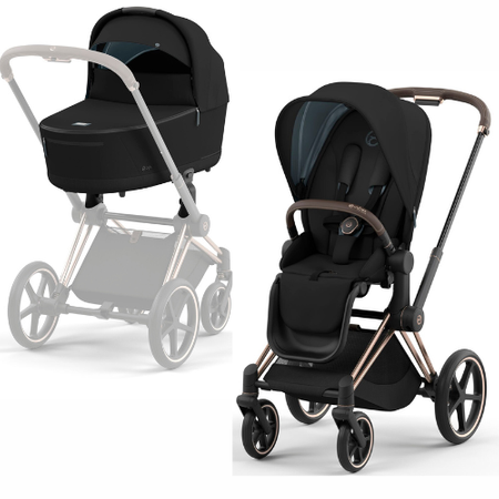 system podróżny 4-w-1 (siedzisko spacerowe Cybex Priam, gondola Priam Lux, gondola Lite Platinum, fotelik samochodowy Cybex Cloud Z i-Size – na jednej ramie)