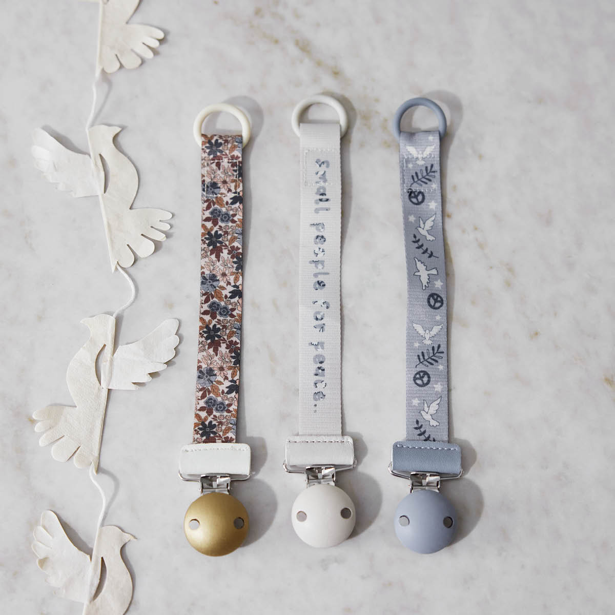 All of our pacifier clips are tested and approved according to the high safety standards of EN-12586:2007 + A1:2011, meaning they are mechanically safe to use and free from any harmful substances.
