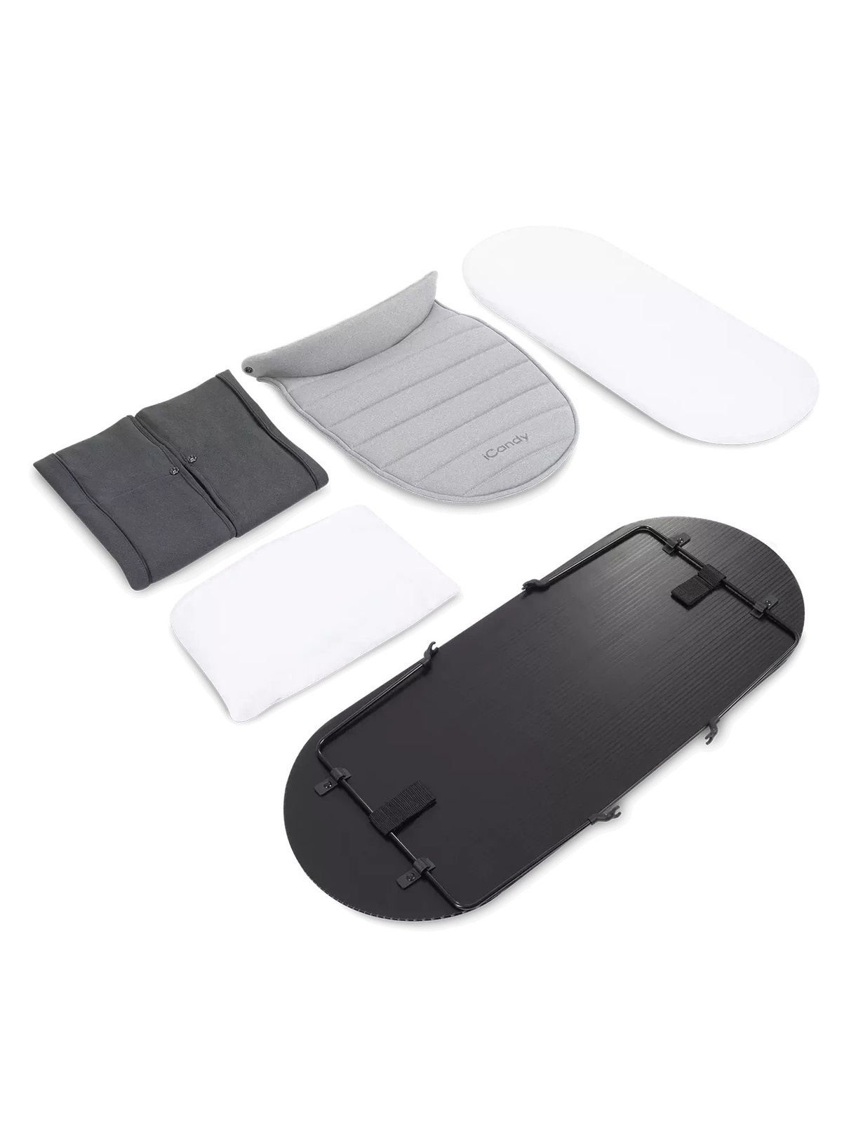 Includes apron, carrycot apron, carrycot fabric, mattress and inner lining.