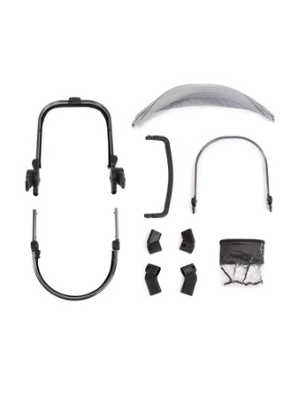 Includes seat/carrycot frame, canopy, converter adaptors and raincover.