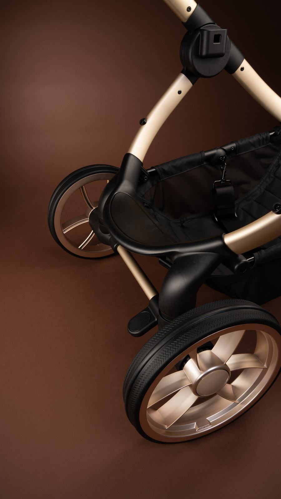 The Peach 7 is with you every step of the way from its ergonomic leatherette handle bar and swivel bumper bar, allowing easy access to your child without full removal of the bar, to the adjustable handlebar heights from 95to 105cm, perfect for partners of different heights.
