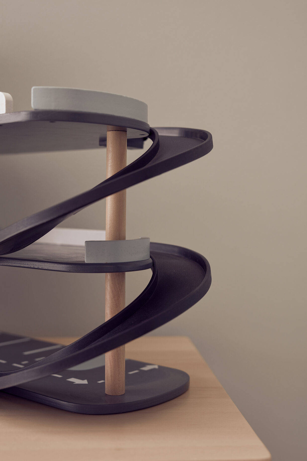 Elevator: Plywood. Floor: Plywood, Schima. Ramp: PP. Vehicles: Schima. Wheels: ABS. Axle: Aluminium. Gate: Bok, Schima, Button: Schima. Elevator String: Polyester.