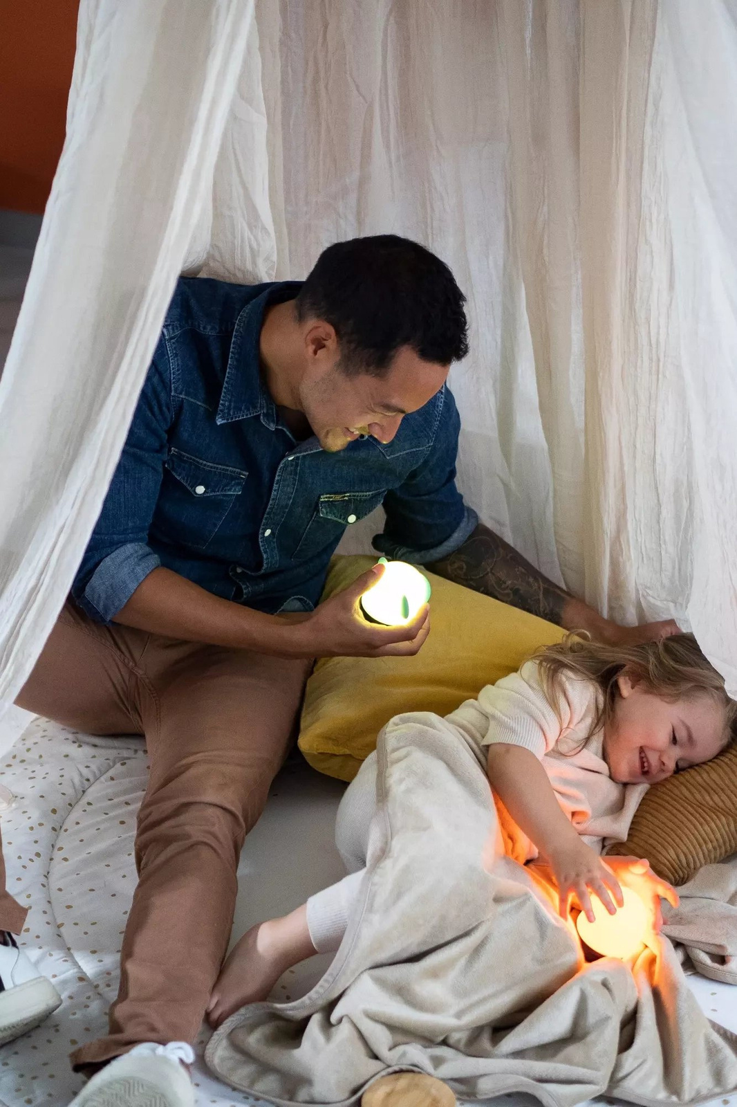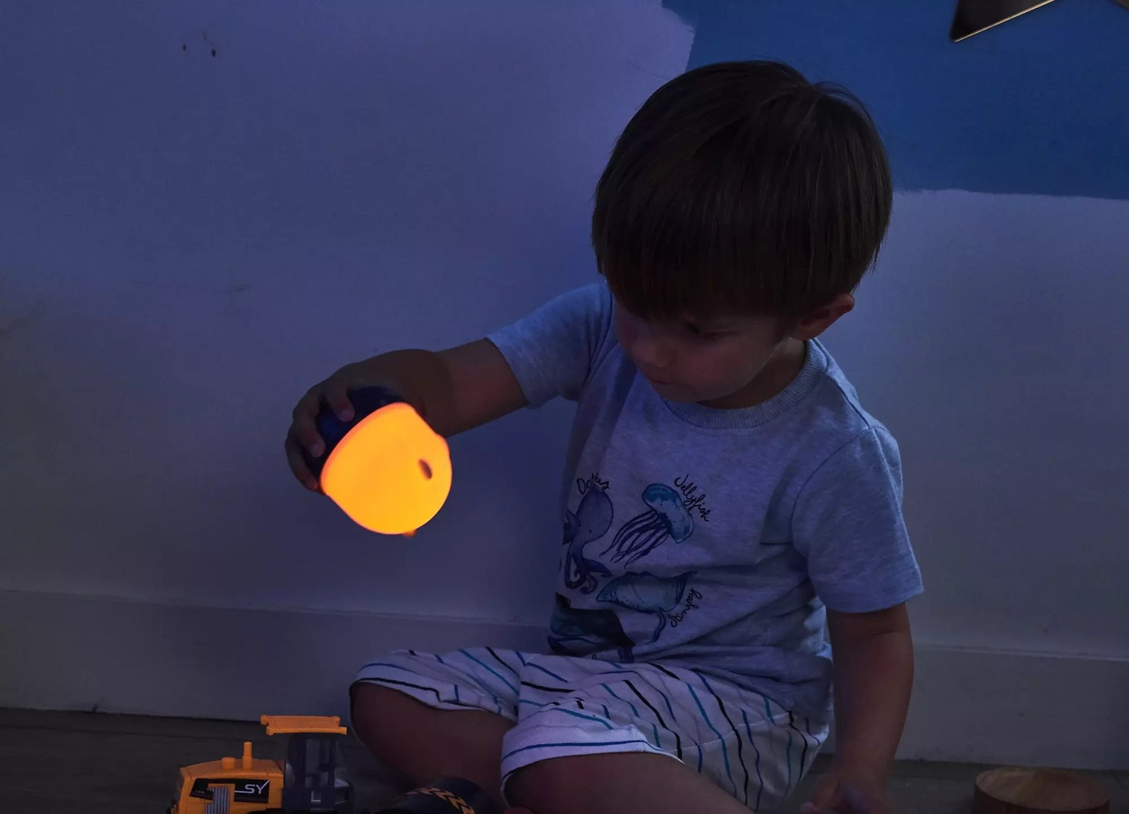 Safety first! Since the lamp is LED light, it doesn’t get warm and the eyes of your child are protected. It’s also wireless charging, so there are no buttons or wires for your child to hurt themselves on. And of course, it’s free from harmful substances and it’s approved as a toy!