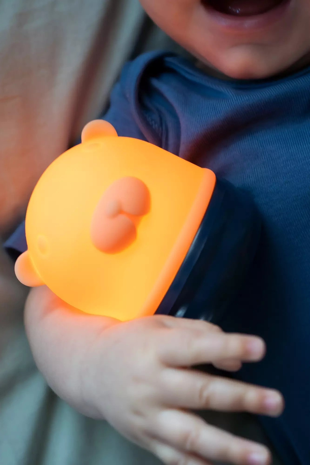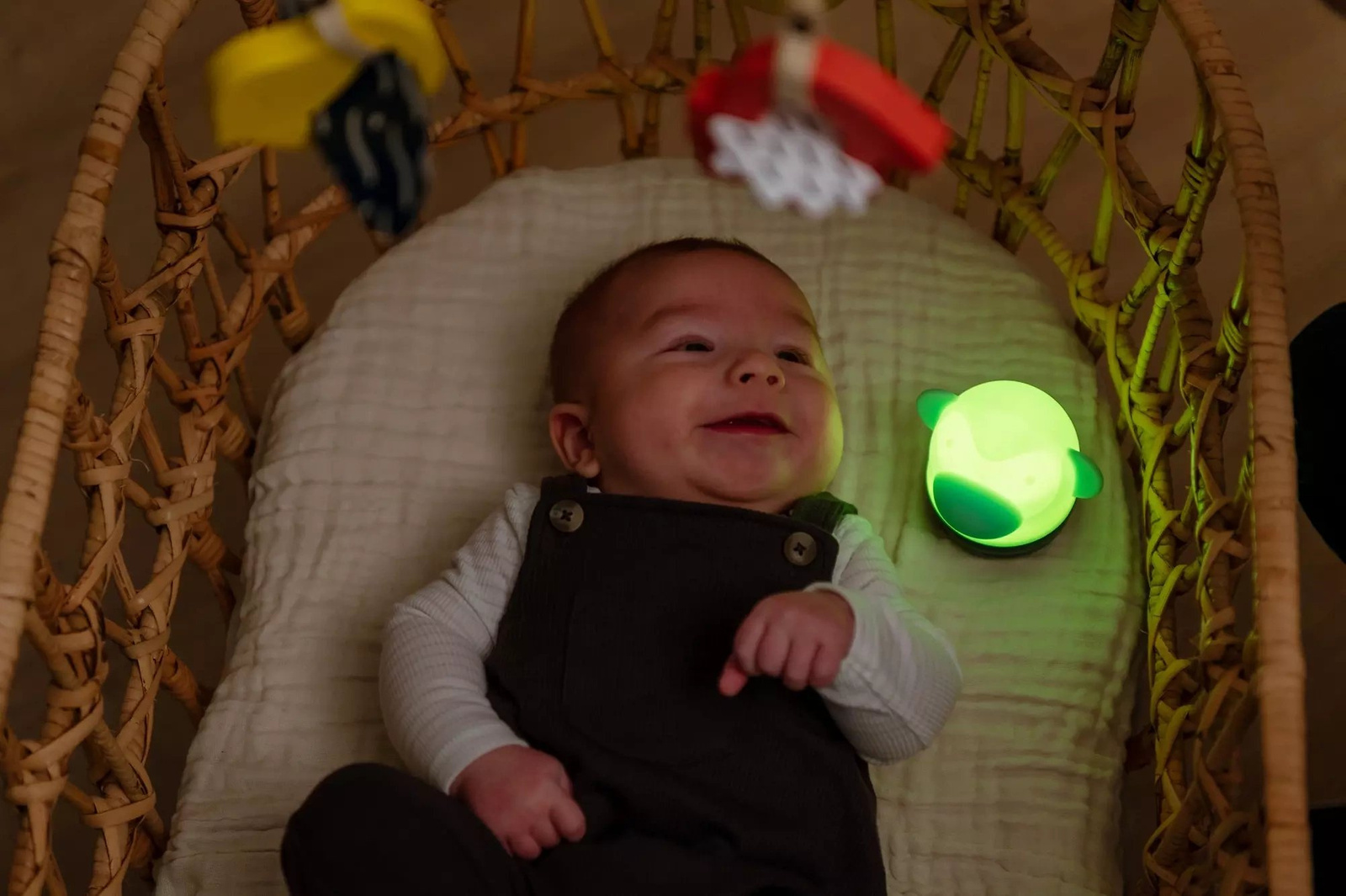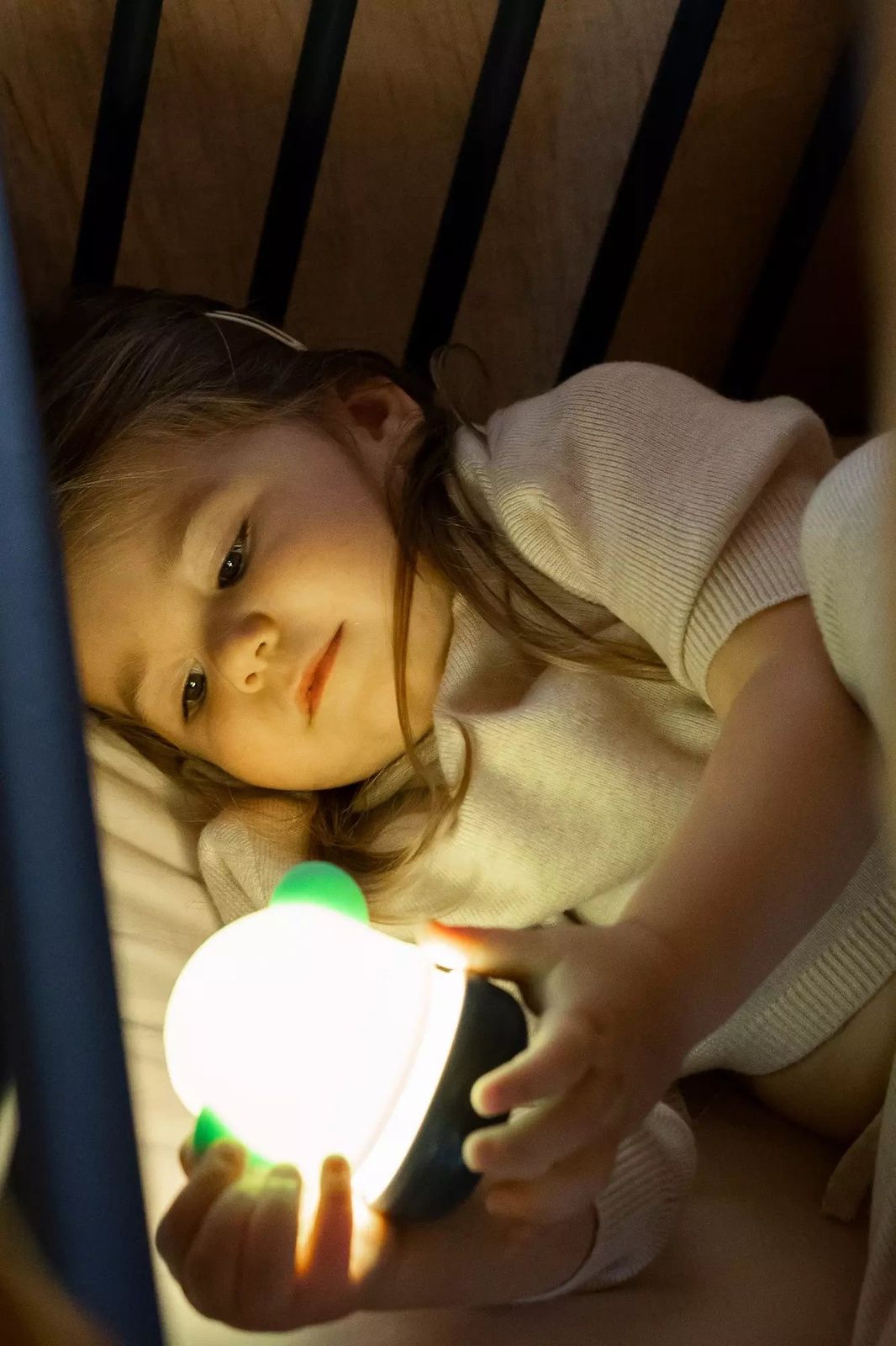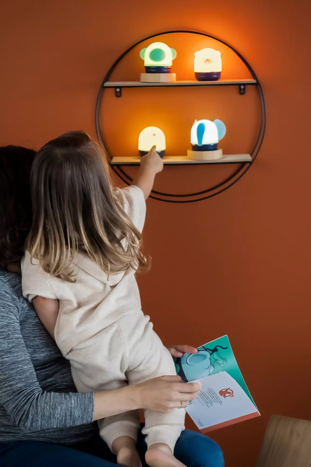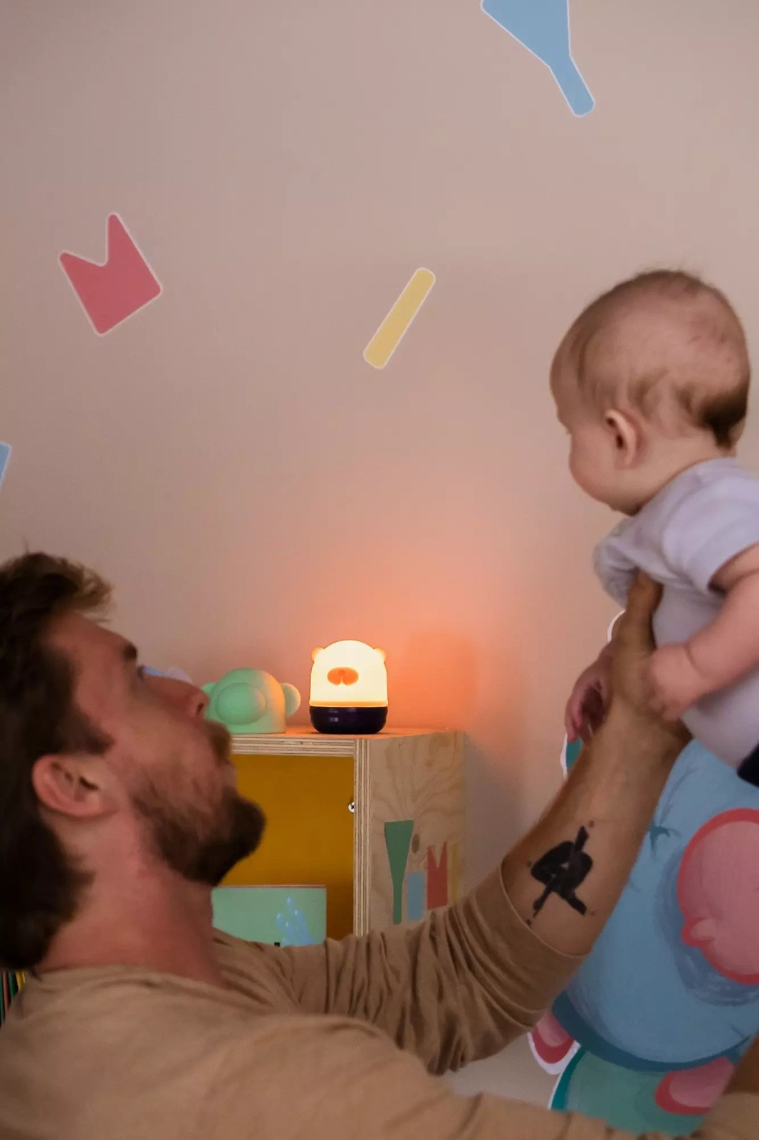 The nightlight provides a soft and comforting glow for your little one to fall asleep by. At only three hours of charging required for 20 hours of autonomy, so you can use this product wherever it is needed. Tap on the nightlight to choose for 40 minutes bright light, 20 minutes softer light or a soft light all night long.