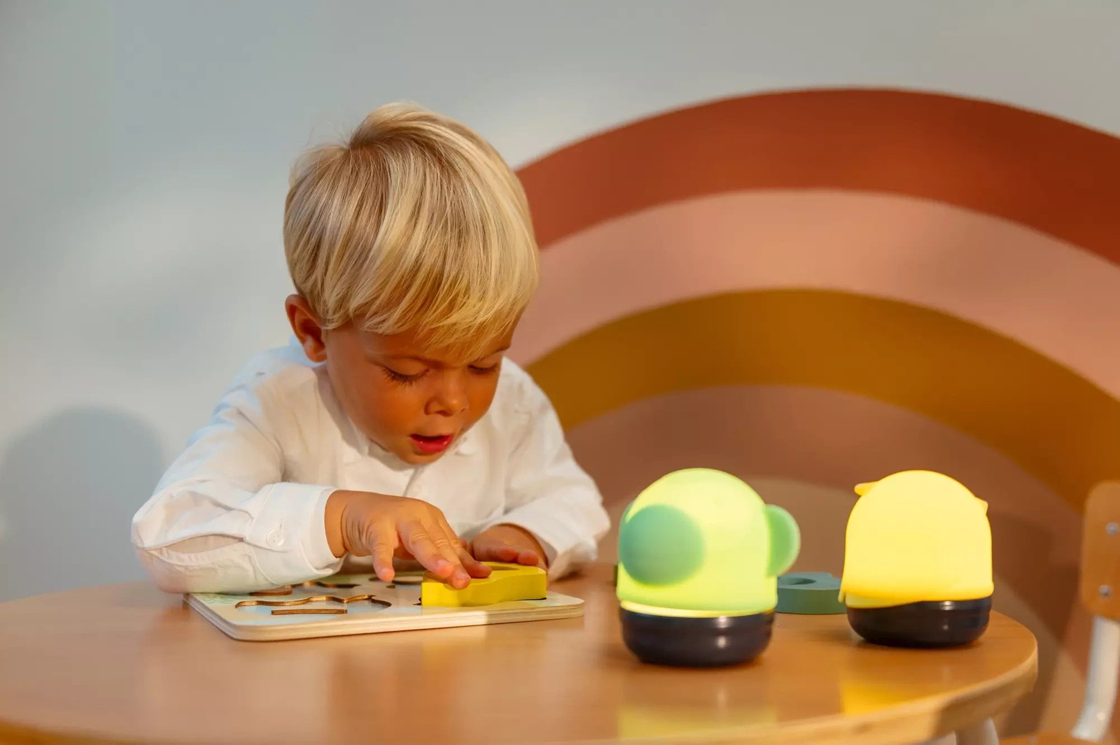 The Yumi Yay nightlight is a wireless night light that has been specifically designed for the needs of children. Featuring one wireless night light and two silicone animal covers. This way, your child can choose who watches over him during the night. Will we choose Otti or Finn tonight?