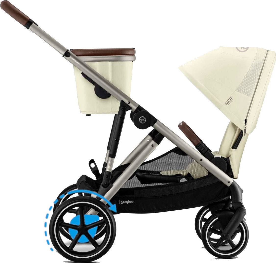 Cybex e-Gazelle S to inteligentna spacerówka z napędem elektrycznym, która ułatwia codzienne spacery i dopasowuje się do potrzeb całej rodziny. Wózek wspiera rodzica podczas jazdy pod górę i po nierównym terenie, a dodatkowo posiada tryb automatycznego bujania, pomagający w usypianiu dziecka. Dzięki możliwości łączenia gondoli, siedzisk i fotelika samochodowego, oferuje aż 23 konfiguracje dopasowane do różnych potrzeb. Kompaktowe składanie, nowoczesne funkcje i komfortowe wykończenie sprawiają, że e-Gazelle S to idealny wybór na lata.