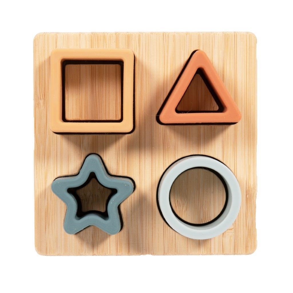 Klasyka na nowo odkryta: sorter kształtów wykonany z silikonu, umieszczony na kwadratowej bazie z bambusa! Produkt trwały, bezpieczny i zdrowy! 4 elementy sortera w pastelowych kolorach są wykonane w 100% z silikonu bez BPA, dzięki czemu są bardzo miękkie w dotyku, trwałe i bezpieczne. To idealna zabawka dla dzieci do wkładania i sortowania różnych kształtów, która jest jednocześnie ćwiczeniem umiejętności koordynacyjnych i motorycznych.