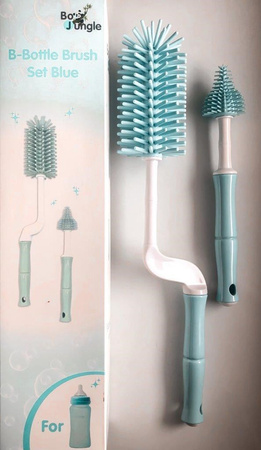 Uniwersalny zestaw silikonowych szczoteczek do mycia butelek i smoczków BO JUNGLE sprawdzi się idealnie w kuchni każdej mamy maluszka. W zestawie duża szczotka do butelek i mała – specjalna do mycia smoczków. Szczotka do butelek ma wydłużony, ergonomiczny kształt z ugiętą rączką co ułatwia dokładne czyszczenie butelek i innych pojemników. Natomiast mała szczotka jest wyprofilowana, z wypustkami nadaje się idealnie do czyszczenia smoczków, mniejszych akcesoriów i wszelkich zakamarków. Wygodę użytkowania gwarantuje rączka/uchwyt z otworem do zawieszania szczotek w kuchni. Szczotki są łatwe do utrzymania w czystości, należy ją myć ręcznie.