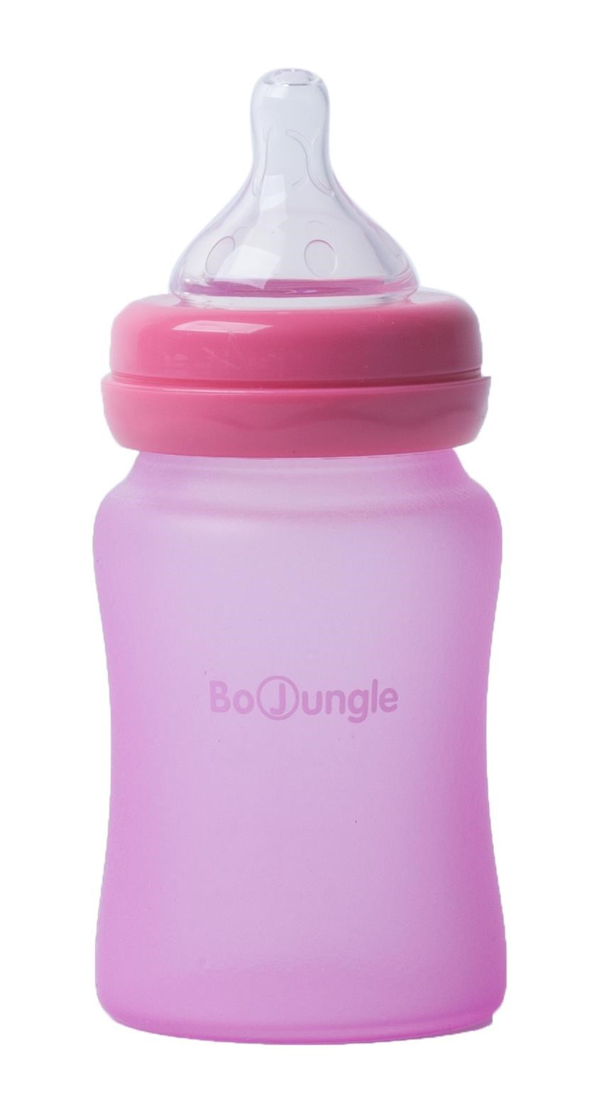 Nie szukaj dalej: Bo Jungle opracowało gamę innowacyjnych butelek dla niemowląt, które pokocha zarówno dziecko, jak i mama. Nasze butelki wykonane są z lekkiego hartowanego szkła medycznego boro-krzemianowego pokryte silikonową warstwą, odpornego na uszkodzenia i wysoką temperaturę. Przede wszystkim posiadają THERMO-funkcję wykrywania ciepła: butelka zmienia kolor na biały, gdy jej zawartość (mleko lub woda) jest zbyt gorąca (od + 40 ° C). Ponadto są bardzo solidne – a co najważniejsze, dzięki silikonowej powierzchni szkło nie rozpryśnie się w drobny mak , jeśli butelka przypadkowo upadnie i pęknie.