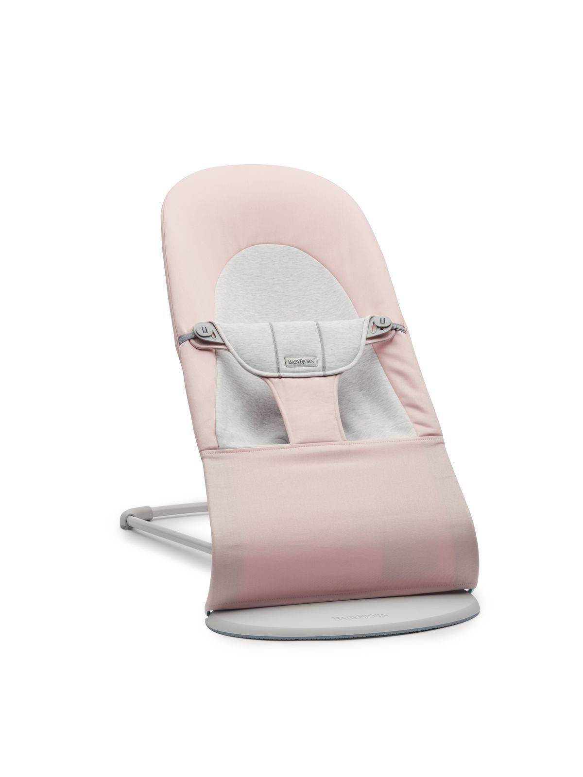 BABYBJORN - leżaczek BALANCE SOFT COTTON/JERSEY w kolorze Jasny Różowy/Szary z ramą w kolorze czarnym