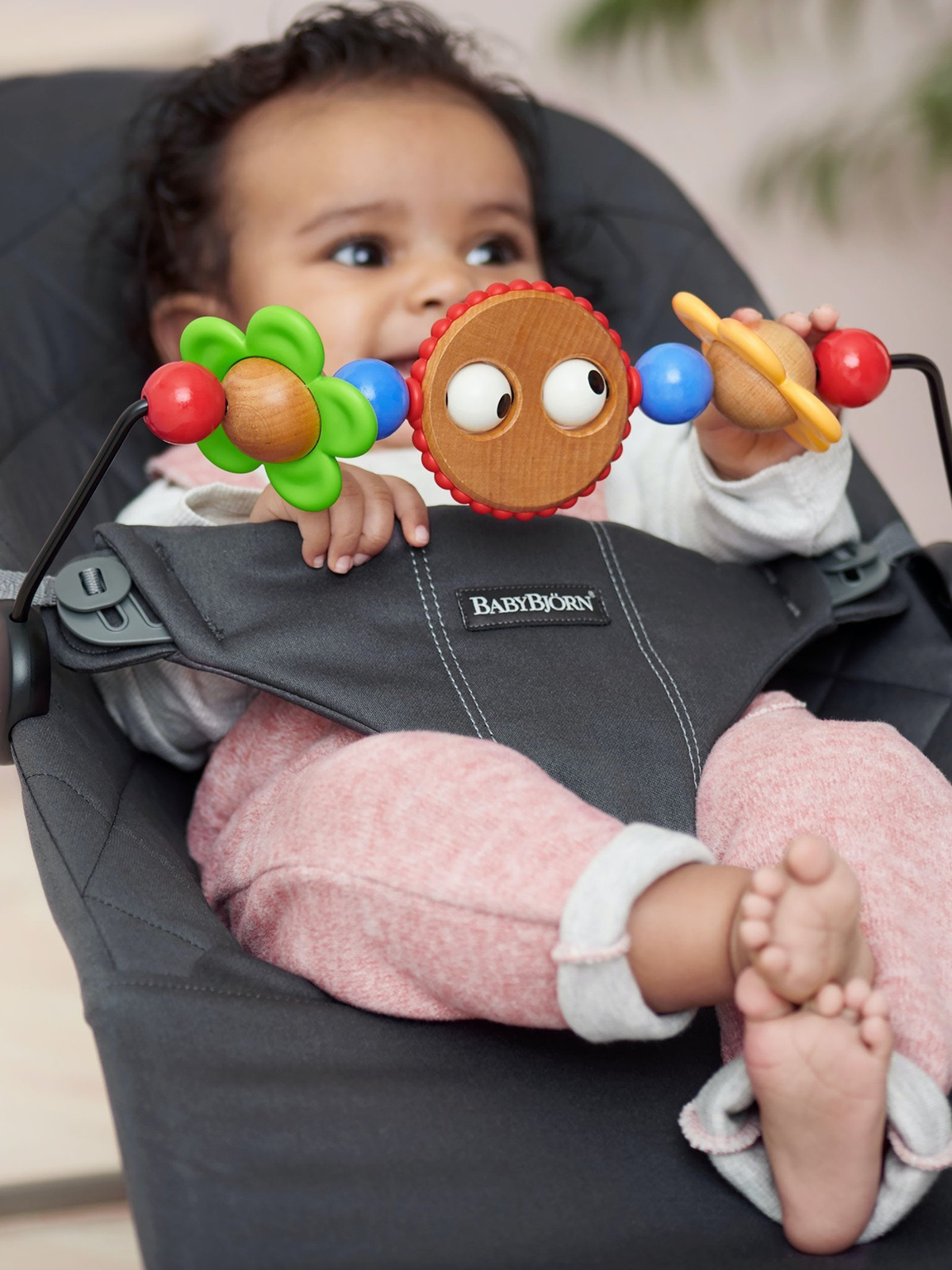 Urocza i zabawna zabawka, którą Twoje dziecko od razu pokocha! Kolorowa, pełna ciekawych kształtów i możliwości obracania - idealna do oglądania, dotykania i wspólnej zabawy! Zabawka do leżaczka BABYBJORN pomaga również dziecku odkrywać jego możliwości fizyczne i rozwijać zdolności motoryczne.
