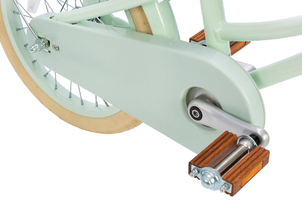 Rowerek wyposażony jest w unikatowe palisandrowe pedały, stylowe kremowe opony oraz wiklinowy, odpinany kosz, idealny do spakowania prowiantu na dzień pełen przygód.