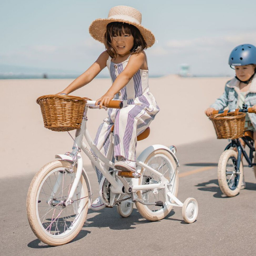 Rowerek wyposażony jest w unikatowe palisandrowe pedały, stylowe kremowe opony oraz wiklinowy, odpinany kosz, idealny do spakowania prowiantu na dzień pełen przygód.