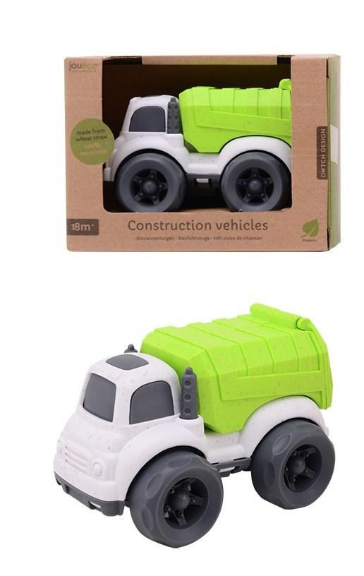 BIO Autko śmieciarka Joueco wykonanane jest z BIOplastiku w najnowszej technologii z recyklingu słomy pszennej. Zostało zaprojektowane z myślą o zmniejszeniu emisji dwutlenku węgla i trosce o środowisko. Charakterystyczne dla zabawek z dodatkiem słomy pszennej są brązowe malutkie kropki. Kolorowa śmieciarka jest lekka i bardzo dobrze wykonana, zwrotna i łatwo nią kierować, wyposażona w ruchomą tylną klapę. Nie posiada ostrych krawędzi, idealna dla małych rączek malucha.