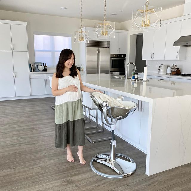 Pneumatyczna regulacja wysokości ułatwi nie tylko karmienia zarówno przy stole kuchennym jak i przy kanapie ale również kontakt z rodzicem.
