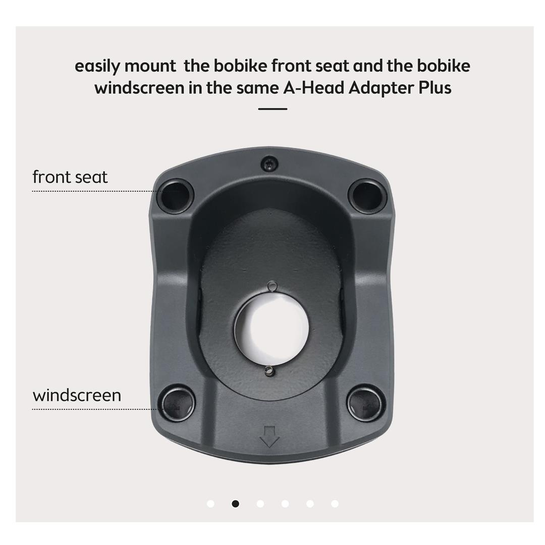 Czyniąc świat fotelików dziecięcych nieco bardziej dostępnym dla każdego i osiągając największą możliwą kompatybilność pomiędzy producentami rowerów i fotelikami Bobike, opracowany został ten nowy adapter A-Head Adapter Plus, który jako solidny i wąski uchwyt pozwala na zamontowanie fotelika przedniego mini Bobike na rowerach z trzonami bez gwintu. Z tym zestawem A-head wymagana przestrzeń montażowa wynosi tylko 4mm / 0,16".