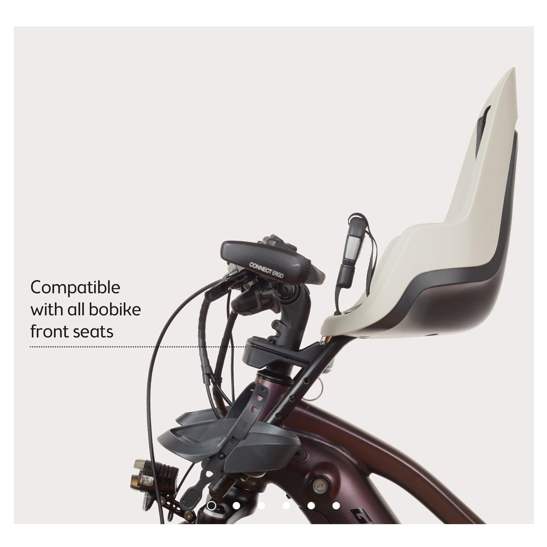 Kompatybilny ze wszystkimi modelami fotelików przednich Bobike: mini one, mini go i mini excluisive plus z systemem montażu na przedniej rurze czołowej / na wsporniku kierownicy.