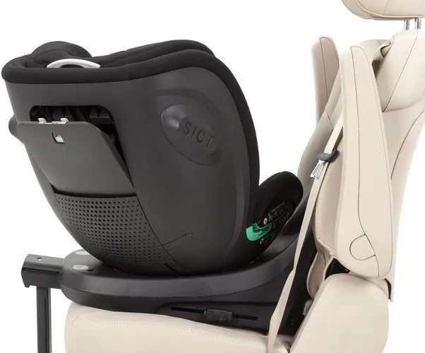 Zapewnia właściwe i bezpieczne przewożenie dzieci od narodzin do 15 miesiąca życia przodem do kierunku jazdy. Pokrowiec fotelika wykonany jest z hypoalergicznego materiału z zastosowaniem pianki "Memory Foam", dostosowującej się do kształtu ciała i umożliwiającej skórze dziecka oddychanie, wspierając optymalną termoregulację. Regulowana podpora zapewnia dodatkową stabilność fotelika samochodowego i zapobiega przechyłom oraz obrotom w przypadku wypadku. Bumper platformy regulowany jest zgodnie z kątem nachylenia oparcia fotela samochodowego, umożliwiając płynne i niezakłócone obracanie siedziska oraz dodatkową przestrzeń dla nóżek maluszka.