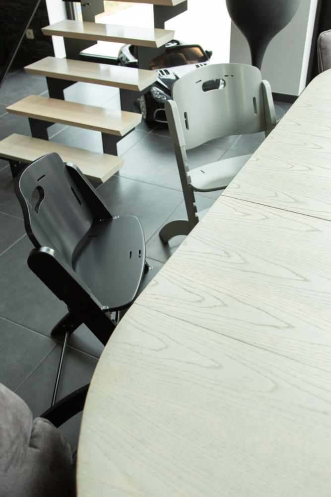 Krzesełko Evosit, dostosowane do każdego etapu rozwoju dziecka, zapewnia komfortowe i bezpieczne miejsce przy stole.