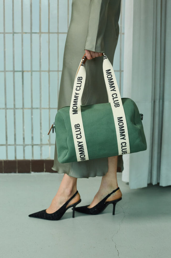 Mommy Club jest dostępna aż w czterech wersjach! Wybierzesz torebkę ze skóry PU w kolorze czarnym lub brązowym z gustownym haftem Mommy Club? A może wolisz nasz ukochany projekt Signature z uroczymi paskami z płótna, dostępny w kolorze złamanej bieli lub zieleni?