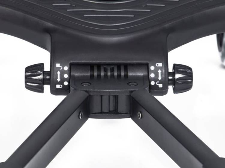 - regulacja w poziomie zwiększa lub zmniejsza kąt rozwarcia ramion dzięki czemu można dopasować dostawkę do szerokości wózka.