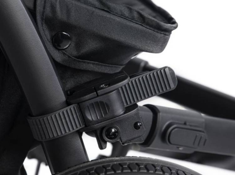 Mocowanie ramion do elementów konstrukcji wózka odbywa się za pomocą specjalnych zacisków z elastycznymi taśmami o regulowanej długości.
