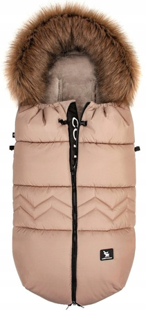 • Cottonmoose ciepły, zimowy Śpiworek Moose (Yukon) __x__ cm do wózka dziecięcego 4w1 z suwakiem z przodu (do gondoli, spacerówki, większego fotelika, sanek), Camel (beżowy z beżowym środkiem, brązowym odpinanym futerkiem)