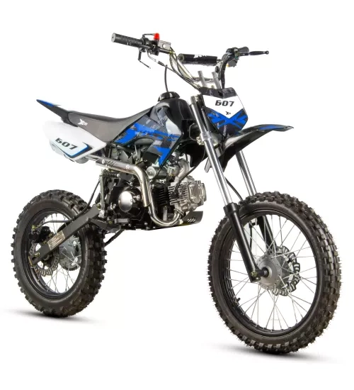 Cross XTR 607 125 cm³ E-Start to motocykl stworzony z myślą o młodych entuzjastach jazdy w terenie. Dzięki wyjątkowym właściwościom technicznym, takim jak mocny silnik 125 cm³, manualna 4-biegowa skrzynia i nowoczesny system E-Start (rozruch elektryczny i nożny), pojazd ten zapewnia doskonałą kontrolę i łatwość obsługi nawet w trudnych warunkach terenowych. Idealny dla dzieci i młodzieży w wieku od 10 lat, CROSS XTR 607 jest doskonałym wyborem na początek przygody z motocrossem.