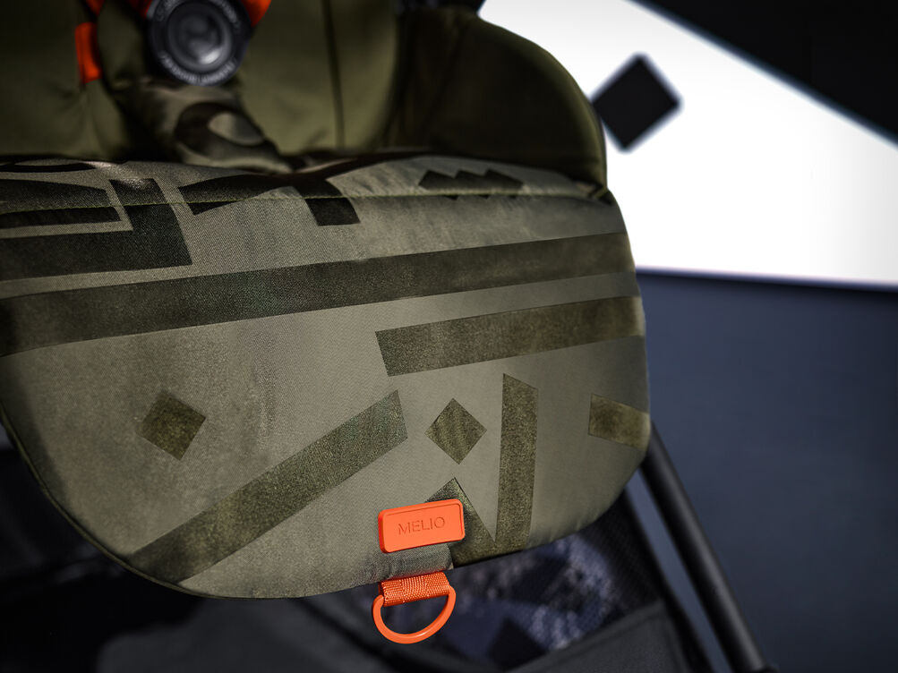 Kompaktowe wymiary Melio ułatwiają poruszanie się po tętniących życiem ulicach miasta, a także łatwe przenoszenie i przechowywanie dzięki zintegrowanemu i poręcznemu uchwytowi.Odwracane siedzisko