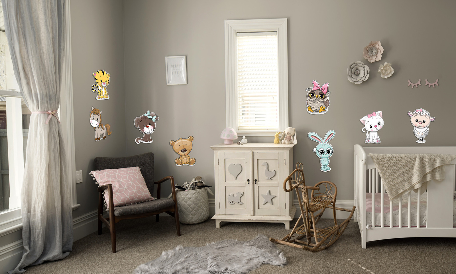 Subtelne i piękne, kolorowe dekoracje, dzięki którym pokój dziecka stanie się przytulny i wyjątkowy, a dziecko chętnie będzie spędzało w nim czas. Dekoracje doskonale nadają się do dekoracji pokoju, kącika zabaw i innych miejsc, w których przebywają nasze pociechy. Dekoracje wykonane są z miękkiej, bezpiecznej i nietoksycznej, podwójnej pianki EVA. Proste do zawieszenia oraz do usunięcia, montowane na taśmie dwustronnej.