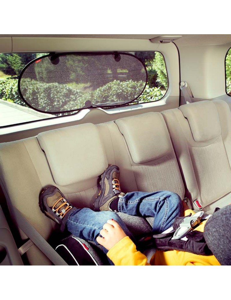 Chroni dzieci podróżujące tyłem do kierunku jazdy przed światłem i żarem słonecznym, zapewniając komfort podczas każdej podróży. Osłonka ta jest bardzo łatwa w montażu za pomocą przyssawek i wykonana z wytrzymałej siateczki, która nie ogranicza widoczności kierowcy.