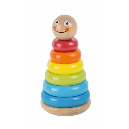 Ta kolorowa wieża 7 elementów - zapewni dziecku rozrywkę na długie godziny irozwinie koordynację wzrokowo-ruchową . Twoje dziecko będzie w ten sposóbpoznawać różne rozmiary i dowie się w jakiej kolejności powinny być one ułożone. Zabawka wykonana z certyfikowanego drewna wysokiej jakości, w pełni bezpieczna, pokryta nietoksyczną farbą.