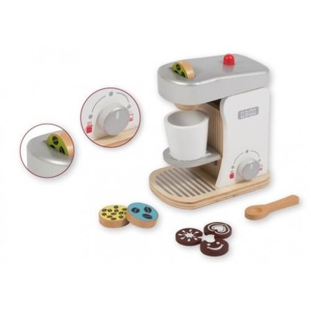 Ten ekspres do kawy jest idealny dla dzieci, aby zapoznać się ze wspaniałym światem urządzeń kuchennych. Coraz więcej i bardzo różnych urządzeń znajduje się wkuchni i dlatego świat fantazji dziecięcej musi być na bieżąco. Piękny inowoczesny wygląd ekspresu pomaga wyobraźni. Filiżanki do kawy można umieścić na górnym poziomie.