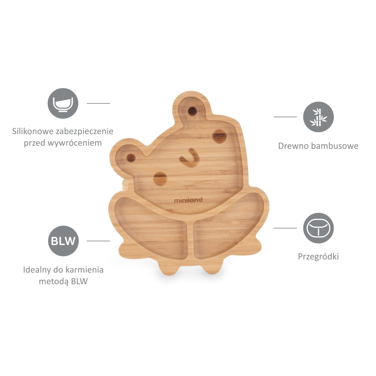 Drewniany talerzyk z przyssawką i przegródkami do karmienia metodą BLW ECO-friendly - Żabka