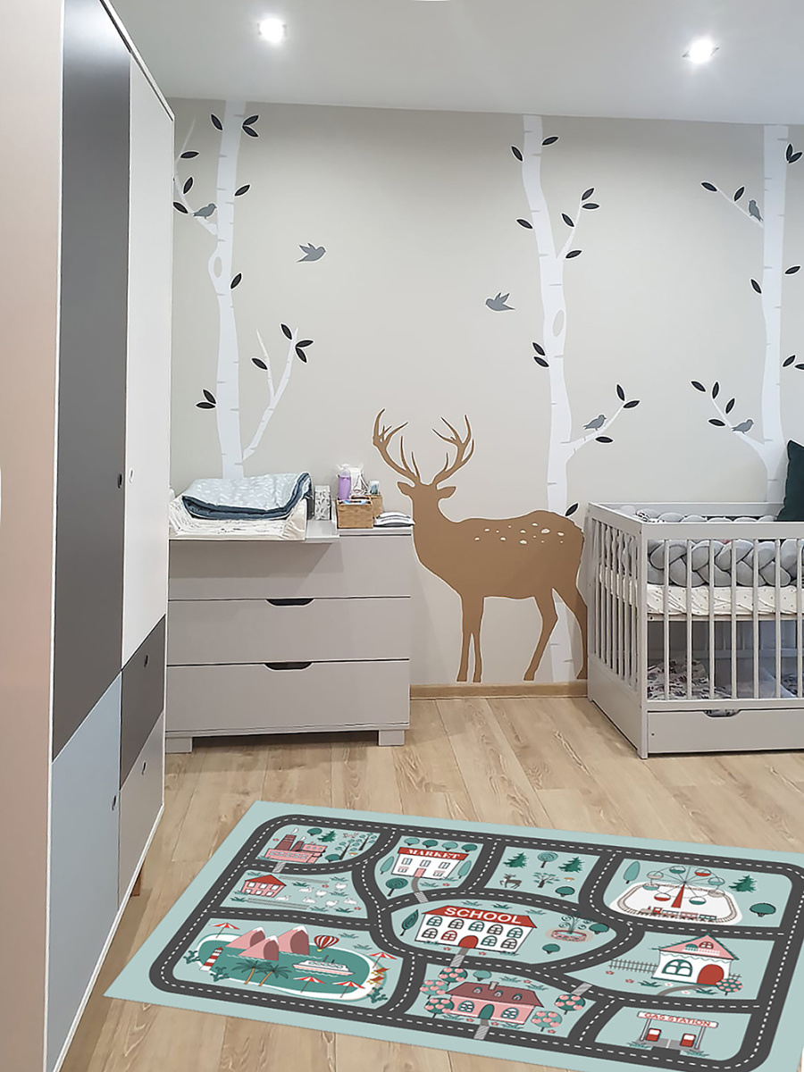 Stylowy, dywanik Miasto pozwoli dziecku zapoznać się z różnego rodzaju miejscami, które można znaleźć w mieście, jak i poza nim. Na dywaniku można znaleźć m.in. szkołę, stację benzynową czy las. Dzieci mogą zaprosić do zabawy innych lub bawić się samemu. Dywan również będzie świetnie dopełniał wystrój pokoju. Jest bardzo delikatny, dzięki czemu jest bezpieczny dla skóry dziecka. Cechy: - łatwy do utrzymania w czystości - wyjątkowo miękki i delikatny - idealnie pasuje do pokoju dziecka, sprawdzi się również w przedszkolach - wytrzymały - spód dywanika jest antypoślizgowy - stanowi świetny pomysł na prezent - rozmiary dywanika - 100 x 150 cm