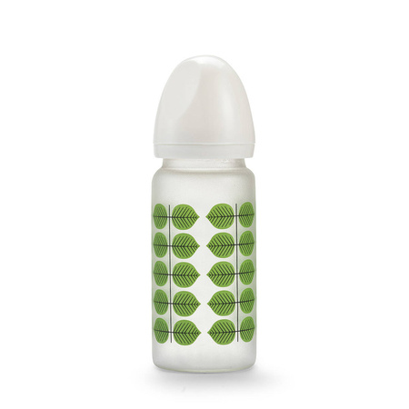 Butelka szklana jest lekka, trwała i odporna na zarysowania. Szkło jest naturalnie wolne od szkodliwych substancji, butelka może wytrzymać temperatury od zamarzania do sterylizacji we wrzącej wodzie. Nasadka na smoczek butelki zapobiega zanieczyszczeniu smoczka, a szeroka szyjka, sprawia, że butelkę można szybko i bardzo łatwo wyczyścić.