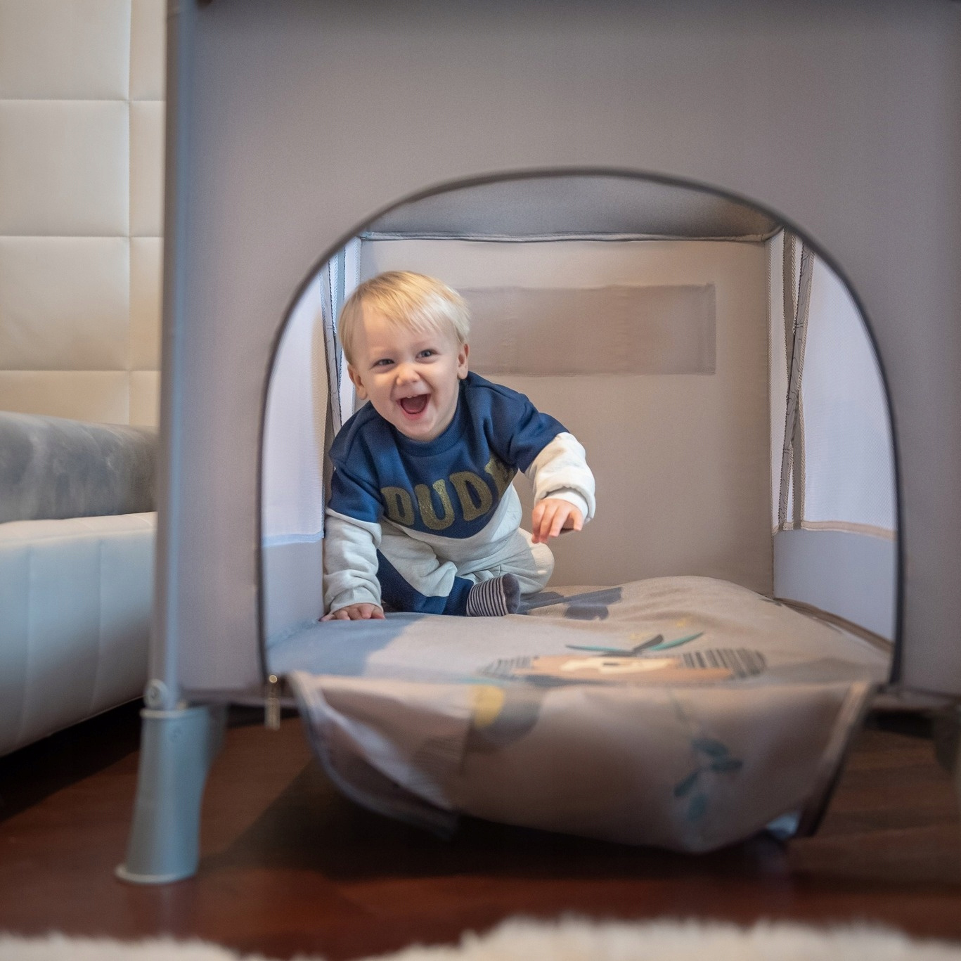 Kompaktowe i lekkie łóżeczko turystyczne z szybkim systemem składania, to idealne rozwiązanie dla rodziców, którzy pragną podróżować ze swoim maleństwem już od pierwszych chwil życia. Espiro Simle to idealne łóżeczko dla dzieci nawet do 3 roku życia. Krawędzie łóżeczka zostały pokryte zaokrąglonymi elementami tak, aby zapewnić dziecku i rodzicowi odpowiednie bezpieczeństwo. Górne elementy łóżeczka Simple zostały wykonane z trwałej i łatwej do czyszczenia tkaniny. W zestawie znajduje się materac, z łatwego do czyszczenia materiału. Z boku znajdują się trzy pojemne kieszenie na najpotrzebniejsze drobiazgi. Simple utrzymany jest w przyjemnej dla oka dziecięcej stylistyce z uroczymi leniwcami. Z boku łóżeczka znajduje się funkcjonalne wyjście, które pozwoli dziecku na swobodne wychodzenie i wchodzenie. Po jednej stronie znajdują się kółka, które umożliwiają łatwe i szybkie przemieszczanie łóżeczka bez konieczności jego składania.
