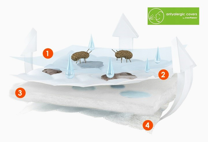 Pokrowiec materaca składa się z trzech warstw, co zapewnia wysoką jakość i trwałość: