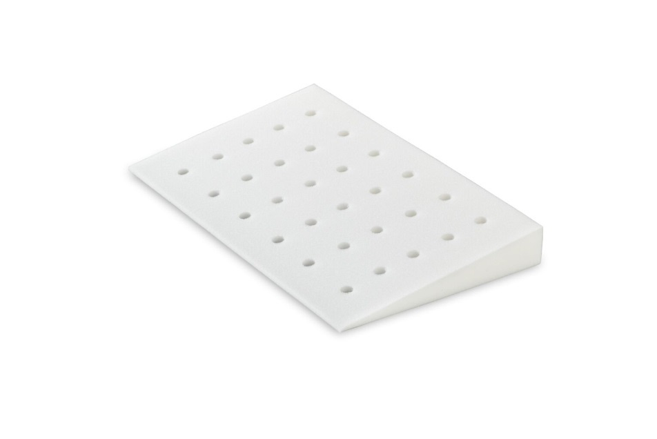 - Pianka poliuretanowa z wewnętrznymi otworami zapewnia dobrą cyrkulację powietrza, ograniczając ryzyko nagrzewania się poduszki i pocenia się dziecka, szczególnie w ciepłe dni lub w czasie gorączki.