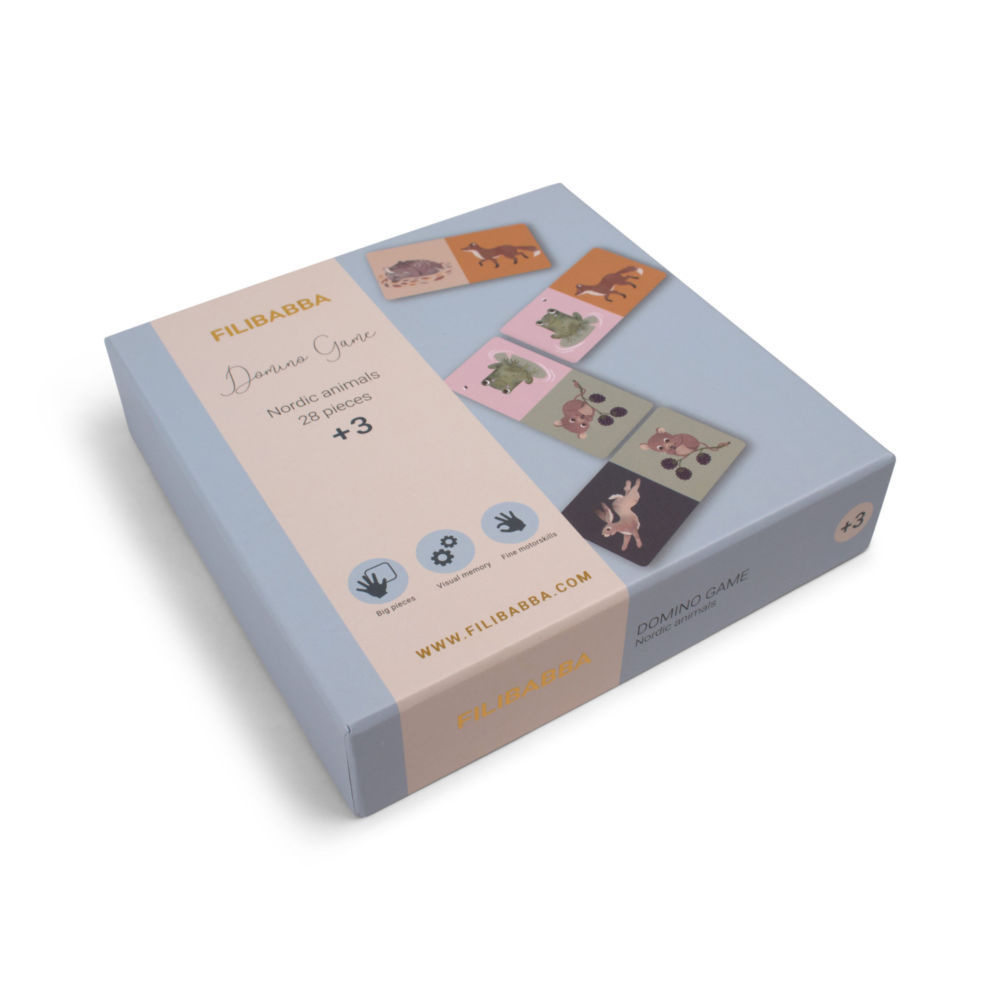 Zagrajmy w Domino! Gra zawiera 28 elementów, z ręcznie malowanymi ilustracjami zwierzątek. Domino jest uwielbiane przez małych i dużych. Uczy precyzji, rozpoznawania i kojarzenia. Gwarantuje godziny wspólnych zabaw. Gra zapakowana w urocze, dekoracyjne pudełko.