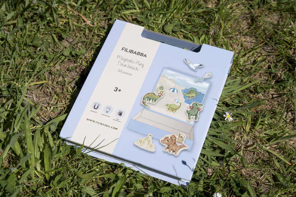 Bawmy się na plaży z wielkimi dinozaurami! Gra magnetyczna inspiruje Twoje dziecko do kreatywnej zabawy i łatwo ją zabrać w podróż. Dzięki ładnemu pudełku z magnetyczną tablicą, elementy pozostają na swoim miejscu.