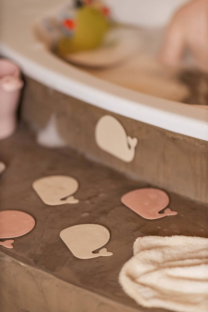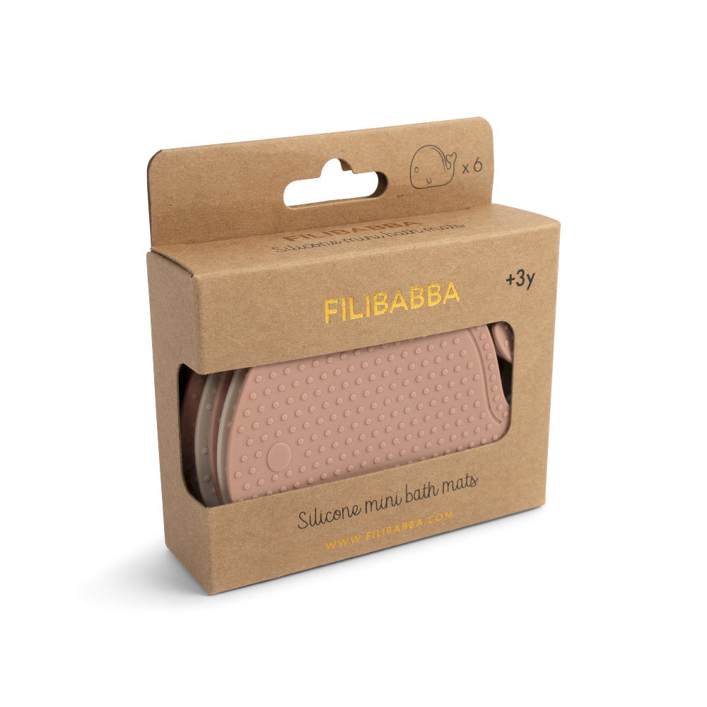 Filibabba Mini maty silikonowe do kąpieli 6 szt. Whales Rose Mix
