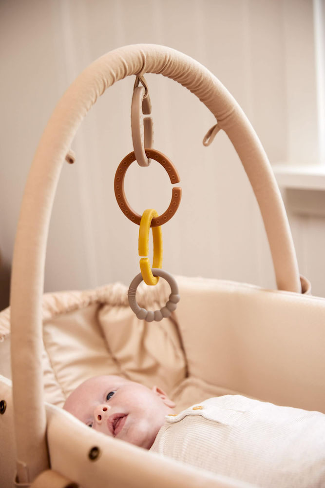 Pałąk wystarczy umocować w odpowiednich otworach w nosidle i zawiesić na nim ulubione zabawki maluszka.