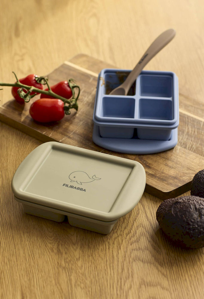 Zestaw zawiera 2 foremki, każda z 4 przegródkami (łącznie 270 ml) Wykonane z 100% silikonu spożywczego certyfikowanego LFGB Elastyczny materiał ułatwia wyjmowanie porcji Szczelna pokrywka zachowuje świeżość żywności Bezpieczne do zamrażania, zmywarki i mikrofalówki (pokrywkę należy zdjąć) Te foremki to praktyczne i stylowe rozwiązanie, które ułatwi Ci przygotowywanie zdrowych posiłków dla malucha!
