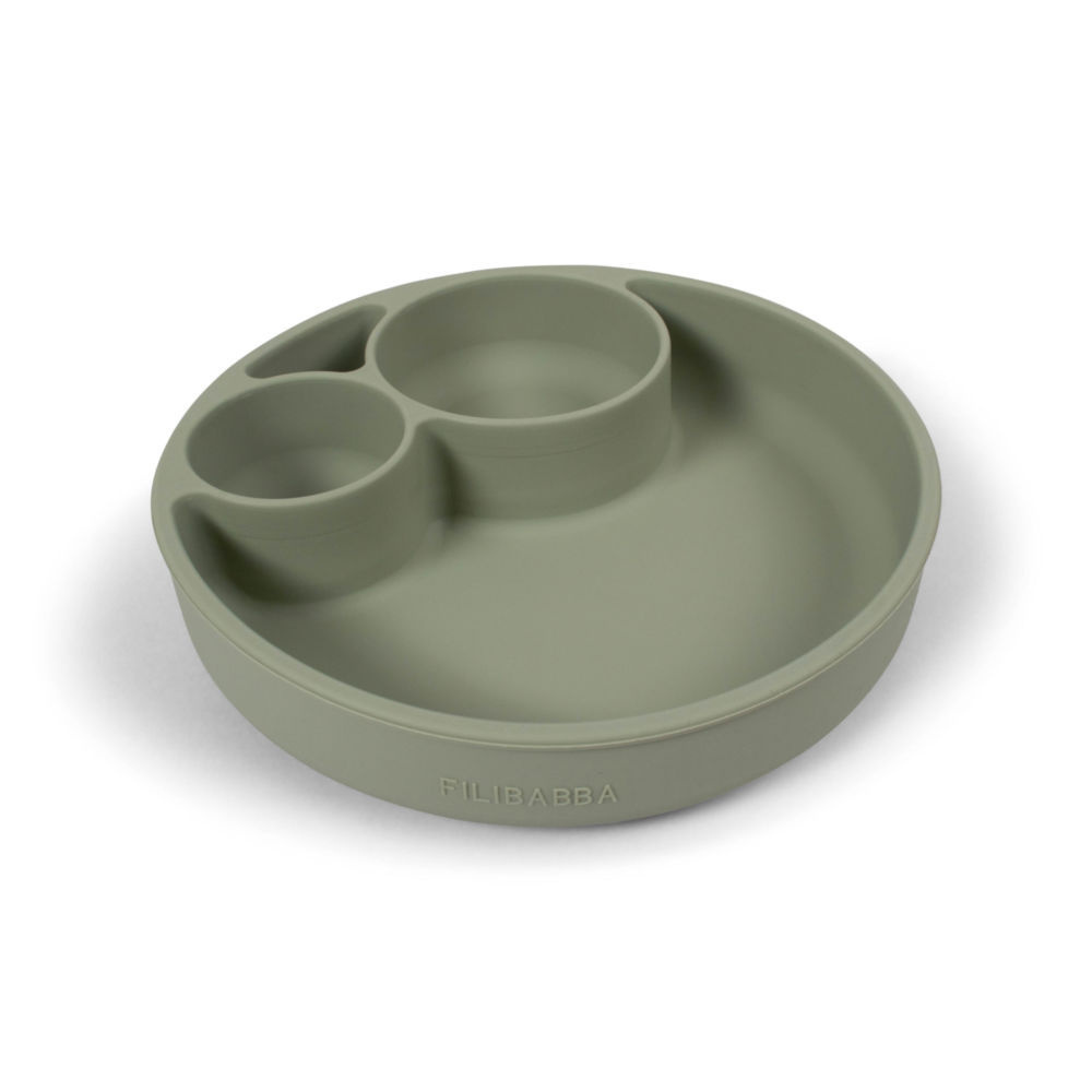 Filibabba Silikonowy talerzyk z przegródkami Green