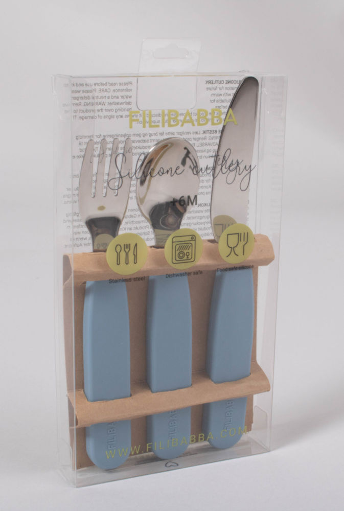 Filibabba Silikonowy zestaw sztućców 3szt. Powder Blue