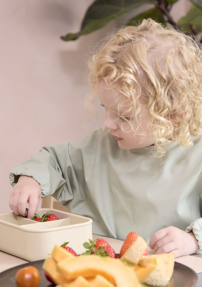 Dzięki przestronnej kieszonce doskonale zbiera jedzenie i płyny, zapobiegając rozlewaniu się płynów.