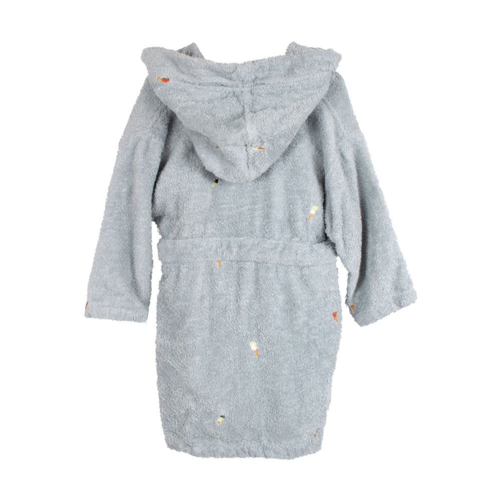Po kąpieli najlepiej otulić się miękkim, puszytym szlafrokiem. Szlafrok został wykonany z najwyższej jakości bawełny organicznej z certyfikatem GOTS. Dodatkowo został ozdobiony haftem w lody. Z przodu posiada dwie duże kieszenie i wygodny pasek.